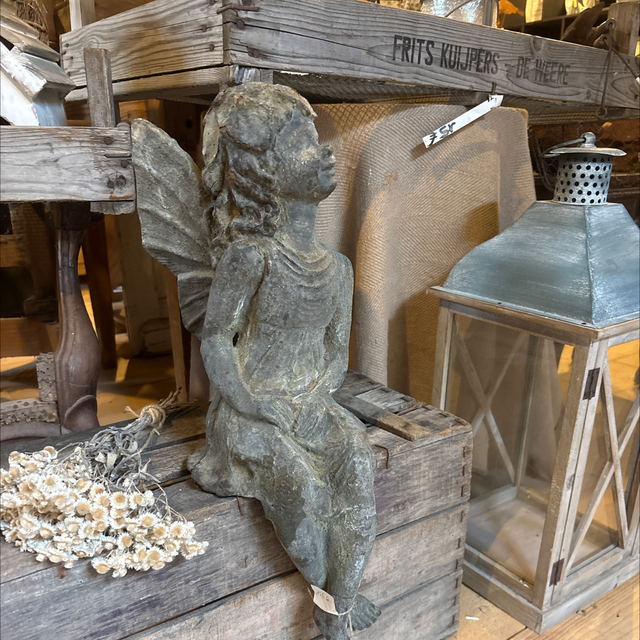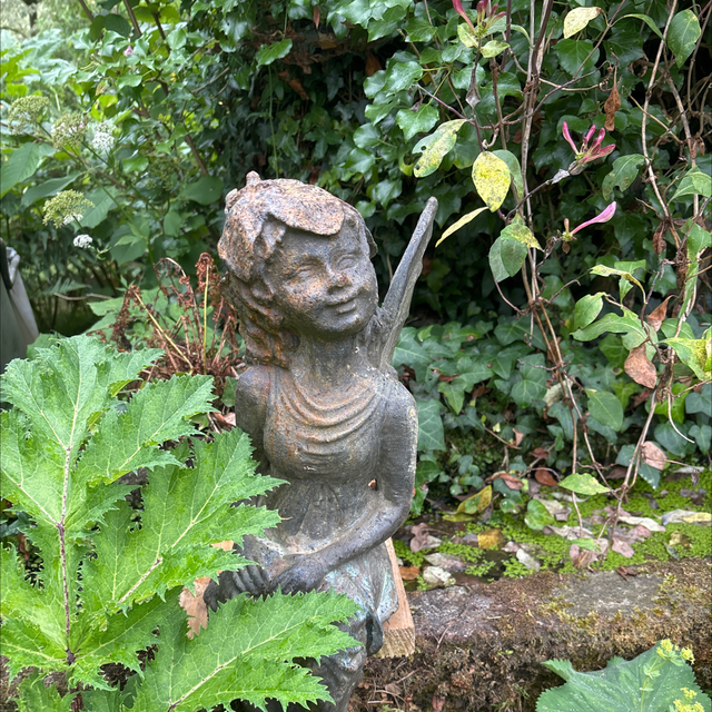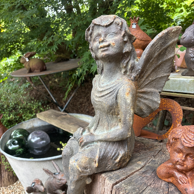 Fée assise en fonte patinée